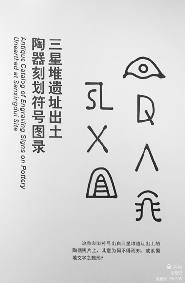 三星堆出土的陶器殘片上有刻劃符號,可能是蜀地文字的雛形,惜未能破譯。