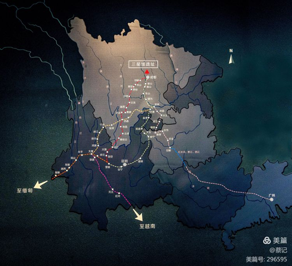 發(fā)端于三星堆的南方絲綢之路往南方分三路延伸。