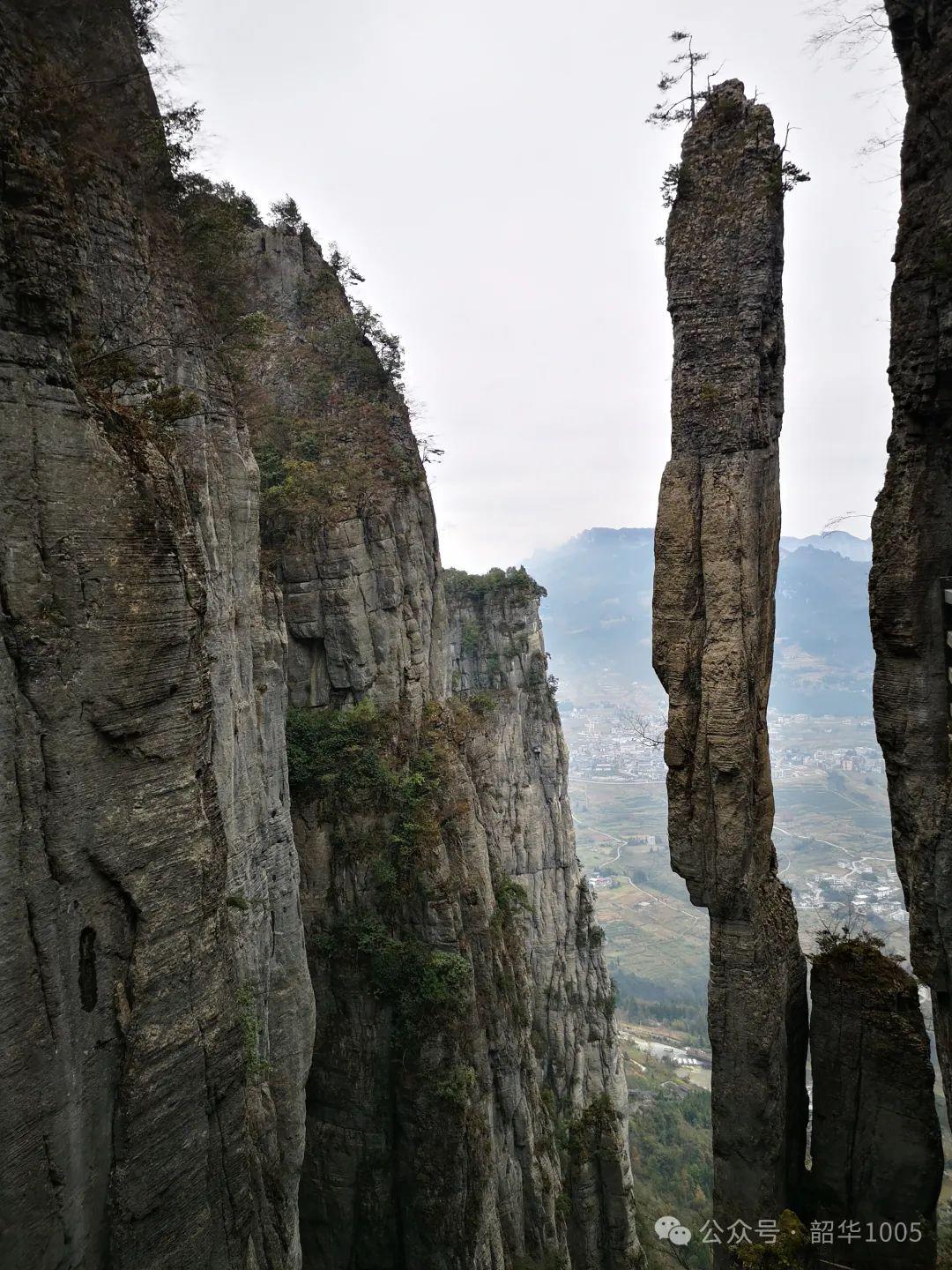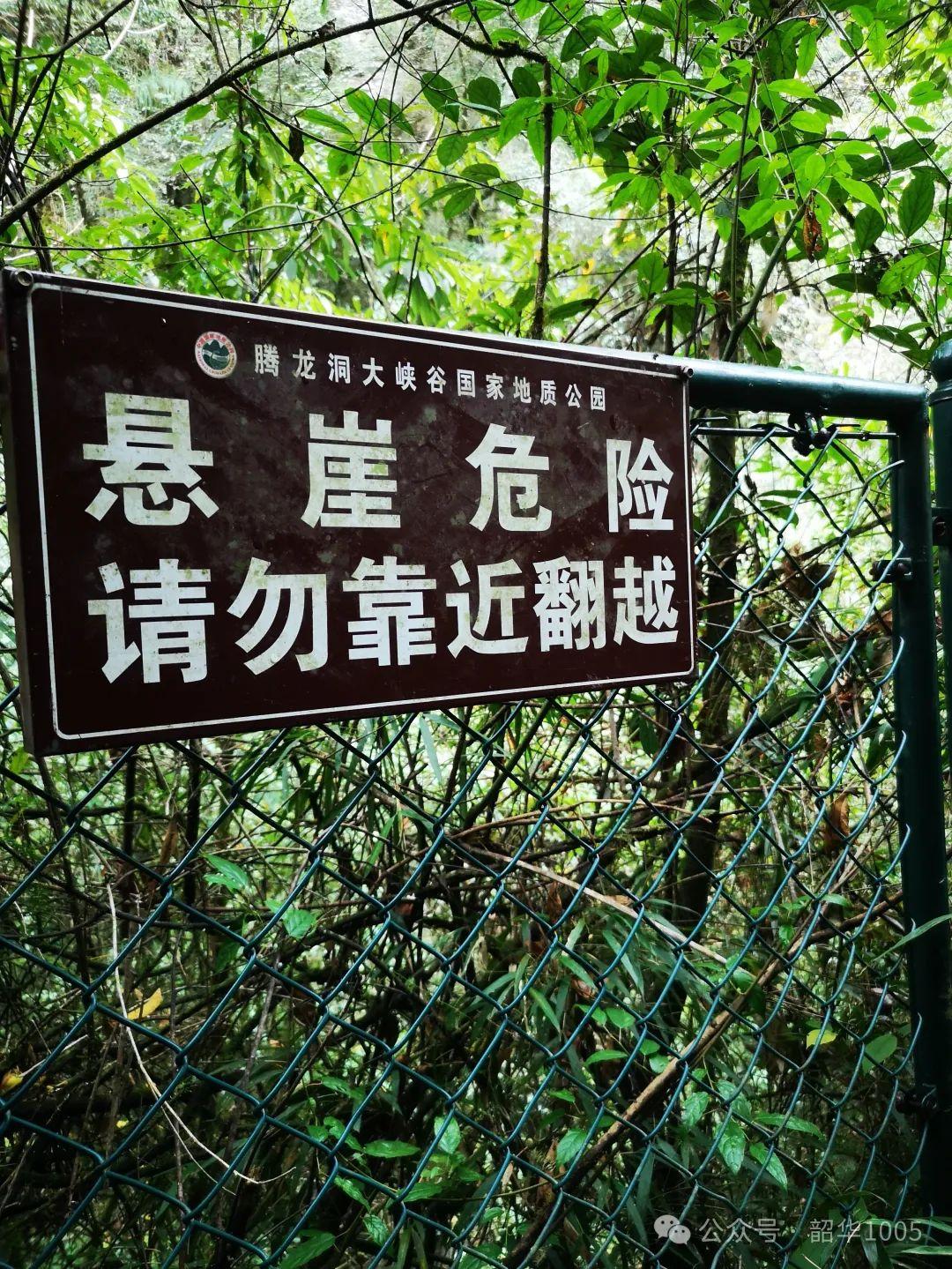 一邊是茂密的叢林,陡峭濕滑的山地斜坡,另一邊溝谷幽深……我們一只手柱著竹棍,另只手提心吊膽地緊抓周圍的樹枝,使勁一步步往上爬或往下走,小心再小心,千丈懸崖就在咫尺間,不過還好有茂密的喬灌木圍擋,也有地方政府做的安全警示牌和鐵欄柵,運(yùn)氣不太壞的話安全是有保障的!