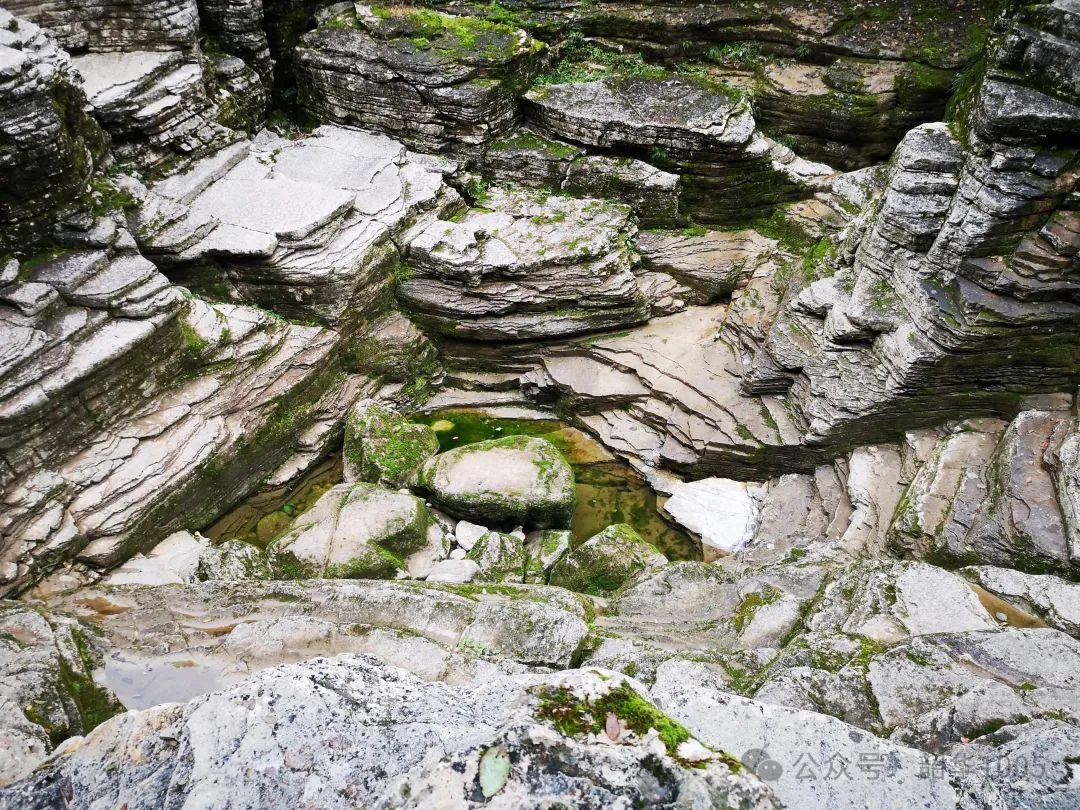 穿越亂石灘既驚險又刺激,是整個旅程的精華。陡崖坍蹋落下的巨石比比皆是,一塊塊、一堆堆密密麻麻、光滑圓溜、嶙峋怪石被磨去了棱角,形狀各異深淺不一的石臼、巖塊褶皺層層疊疊、條條巖縫溝壑清晰可見、紋理層次分明……橫七豎八靜靜地橫亙在河床中,布滿了青苔,處處殘留著水流泥沙侵蝕的痕跡,清晰地記錄著清江億萬年的地質(zhì)變遷,仿佛撕開了時間之門,真真切切地展示著億萬年前大自然無窮的力量。