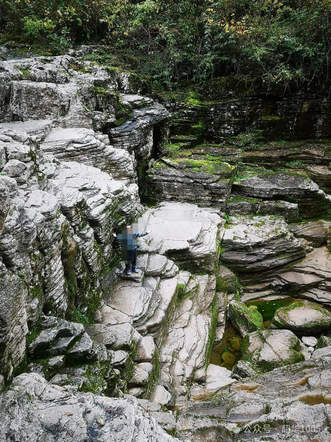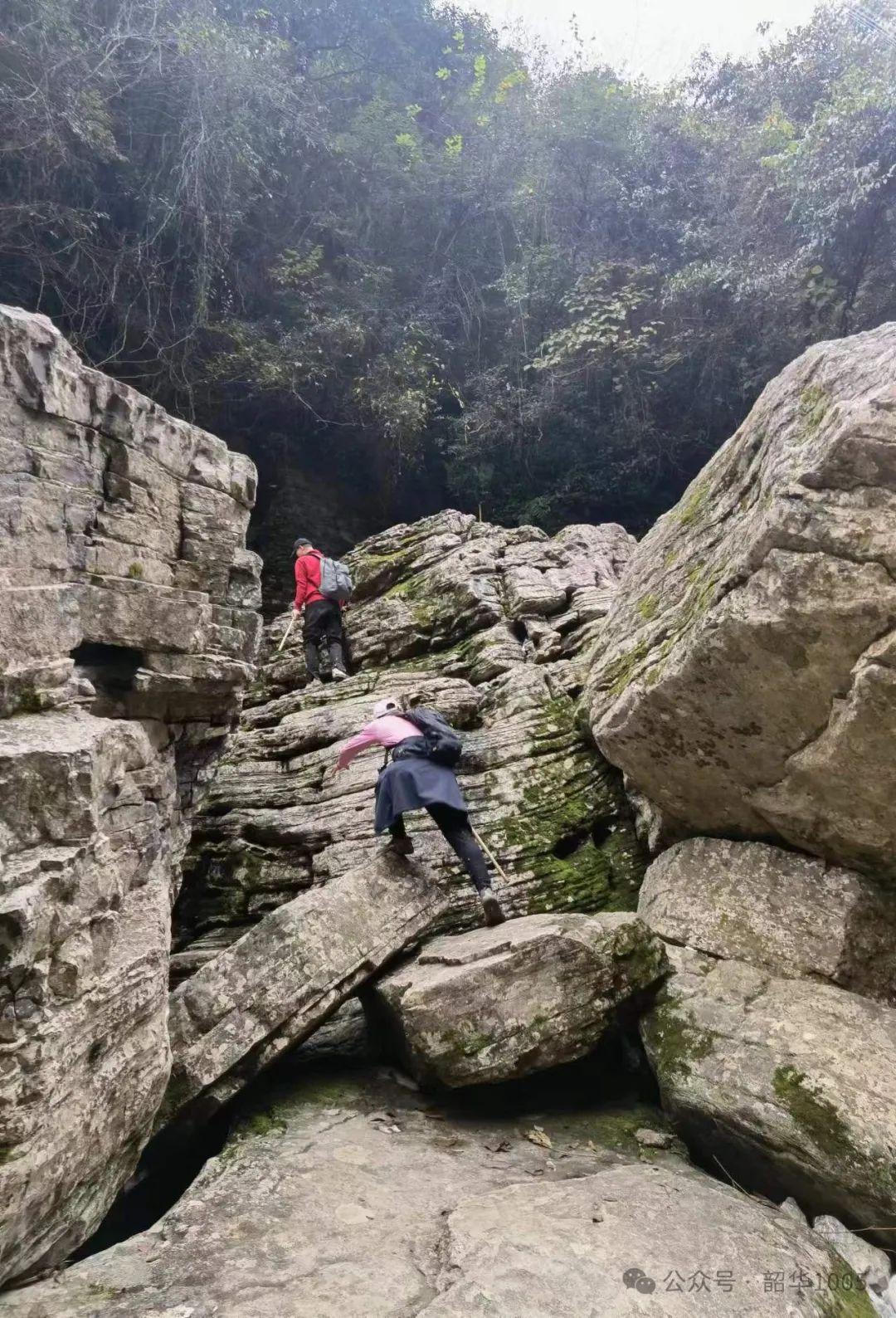 穿越巨石堆,我們時刻不敢掉以輕心,時而俯身攀爬象烏龜一樣手腳并用,時而象小鹿一樣在石塊間跳躍,時而相互提醒注意安全,峽縫攀爬還必須相互伸手拉一把……聽導(dǎo)游講每年都有不少“驢友”因滑倒受傷而要救援,但救援時間短則四五小時,長則半天,為啥?你知道的!