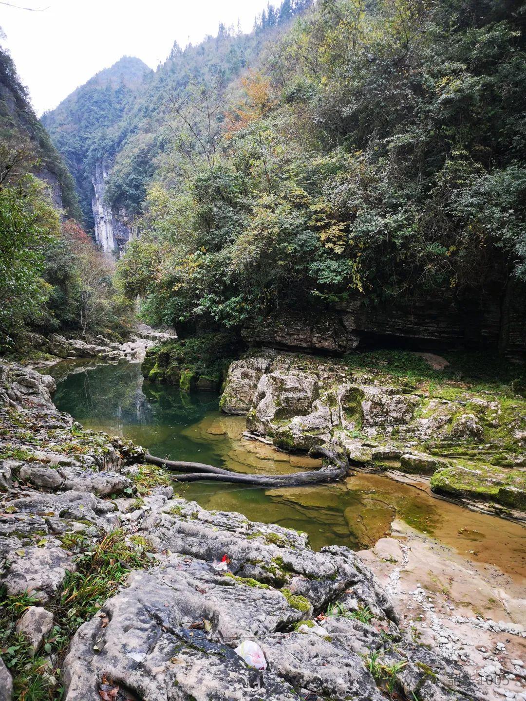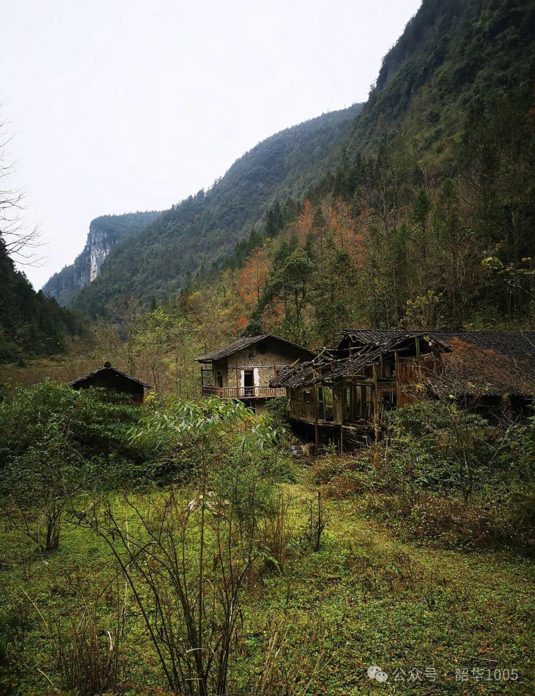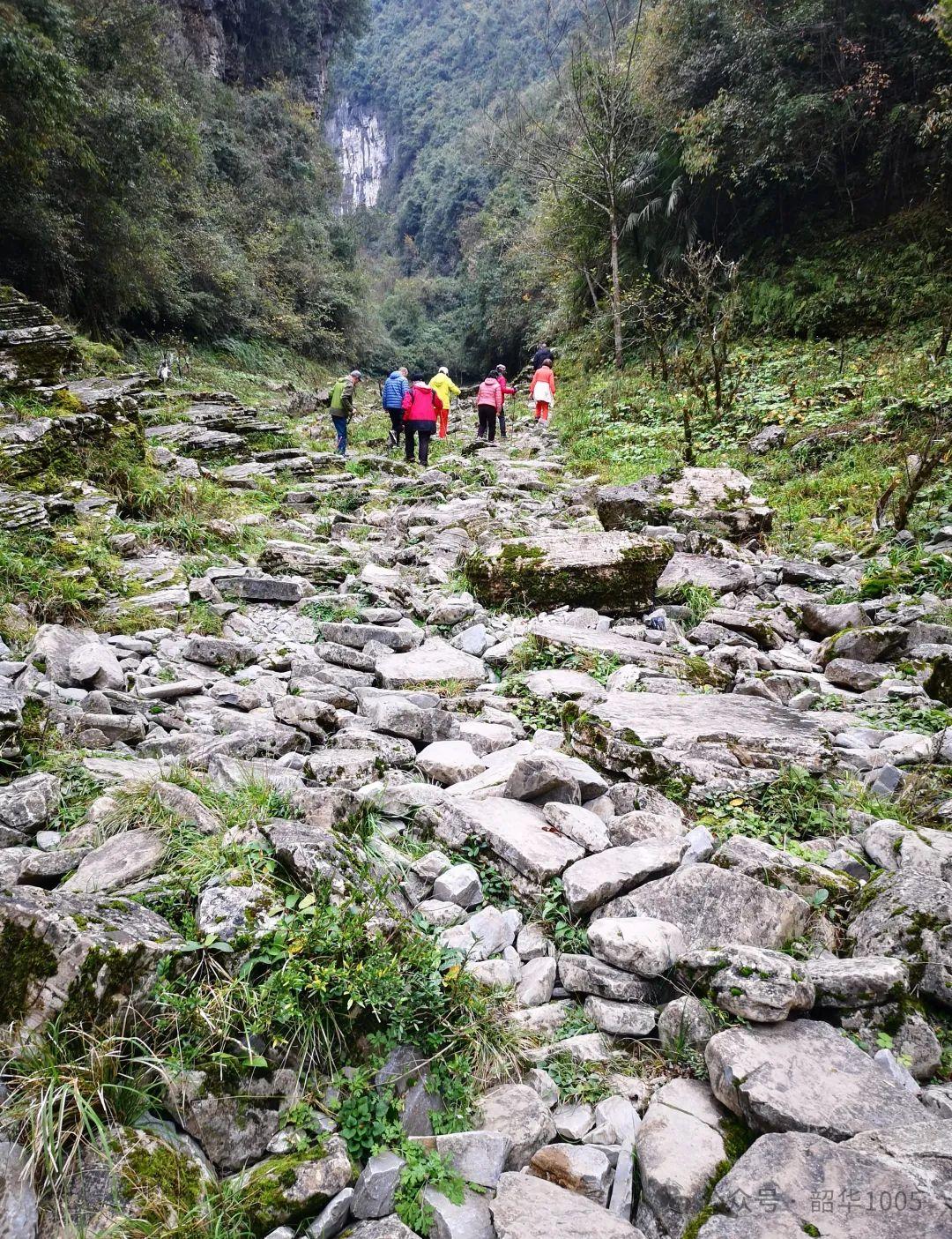 清江古河床屬于典型的喀斯特地貌,海拔1000多米,地質(zhì)結(jié)構(gòu)復(fù)雜多樣,沿途風(fēng)光秀美,可謂步移景異,集雄、險、奇、幽、秀于一體,讓人目不暇接,行走其中不僅是美的享受,還令人雄渾震撼,既有千丈懸崖、獨(dú)峰絕壁、嶙峋怪石、巖洞暗河、天坑河谷、石灘河床,又有流水瀑布、原始叢林、高山草甸、山水溯溪、叢林小道,還有獨(dú)家古寨……僅有的幾棟零星土家族吊腳樓小屋早已人去屋空,頂漏墻塌,破敗不堪,殘垣斷瓦滿青苔,凄清蕭瑟雜草覆滿徑,別有一番景趣,一切一切都是大自然鬼斧神工的饋贈,而今這里已變成徒步探險者向往的樂園!
