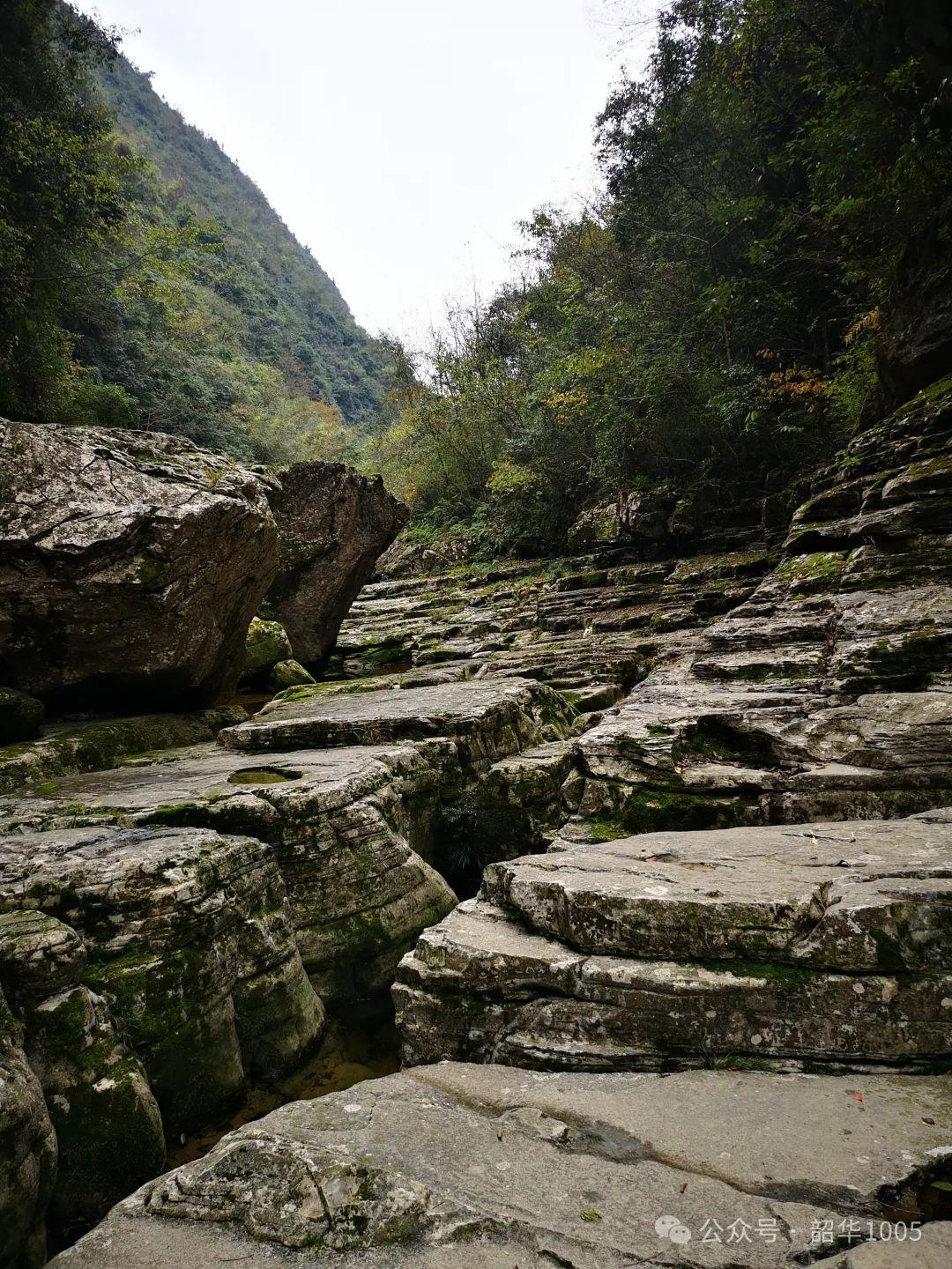 離開喧囂的都市置身其中,看河床兩岸絕壁聳立,云霧繚繞,涼風(fēng)拂面,我們仿佛穿越在一幅流動的水墨畫卷之中,每一幀都令人心曠神怡、賞心悅目,每一步都像踏著清新自然的韻律,深呼一口五臟六腑滿滿的甜爽可口,心靈瞬間似乎沒有了束縛羈絆,一種恍如置身世外、超凡脫俗的放松與寧靜,讓人好生愜意!