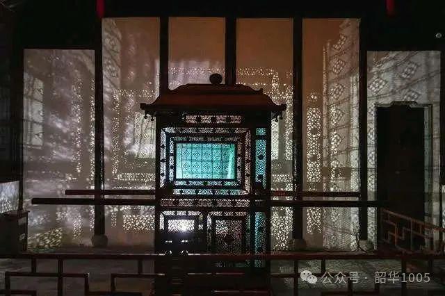 走進一進院,兩頂由蘇雕工藝制成的轎子陳列兩邊,光影透過轎身,各式花紋圖案清晰可鑒地投射到墻面上,流金疊翠、光彩熠熠,真叫人嘆為觀止!