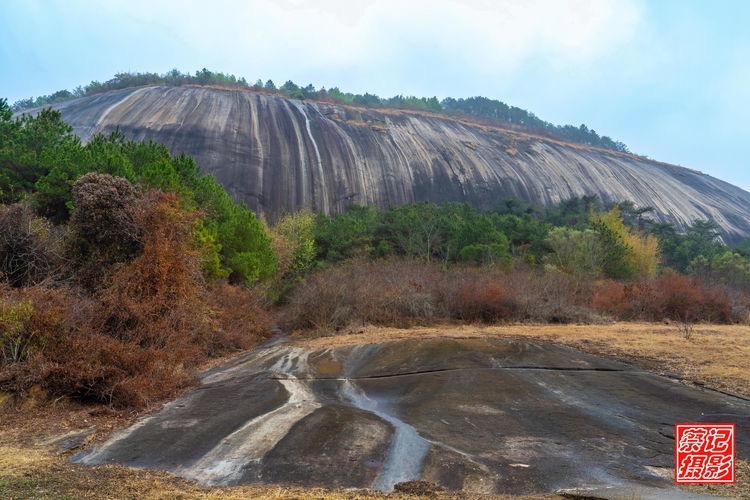 平地隆起圓丘狀花崗巖巨石,高191米、長(zhǎng)1365米、寬695米,無(wú)溝壑和裂隙,一石成山!從上而下的紋理宛如瀑布傾瀉。