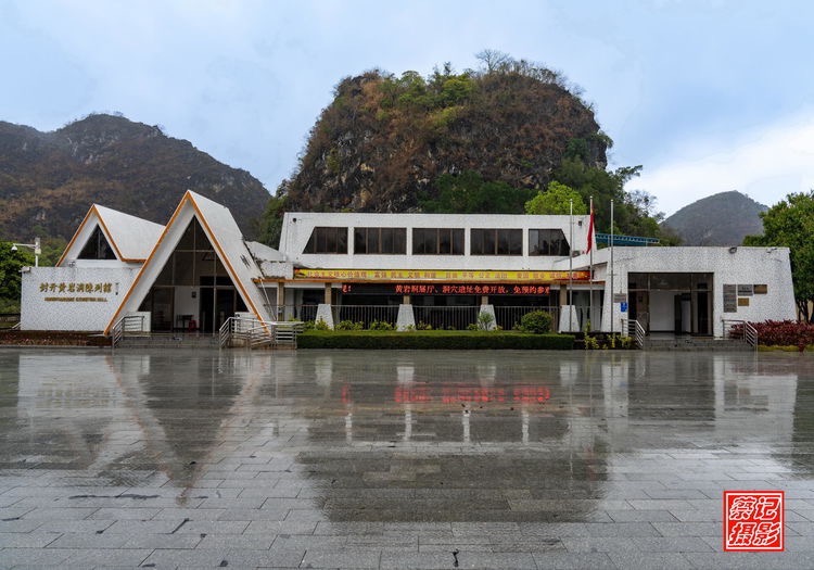 黃巖洞石灰?guī)r孤峰圖(前面是黃巖洞陳列館)/攝于黃巖洞陳列館