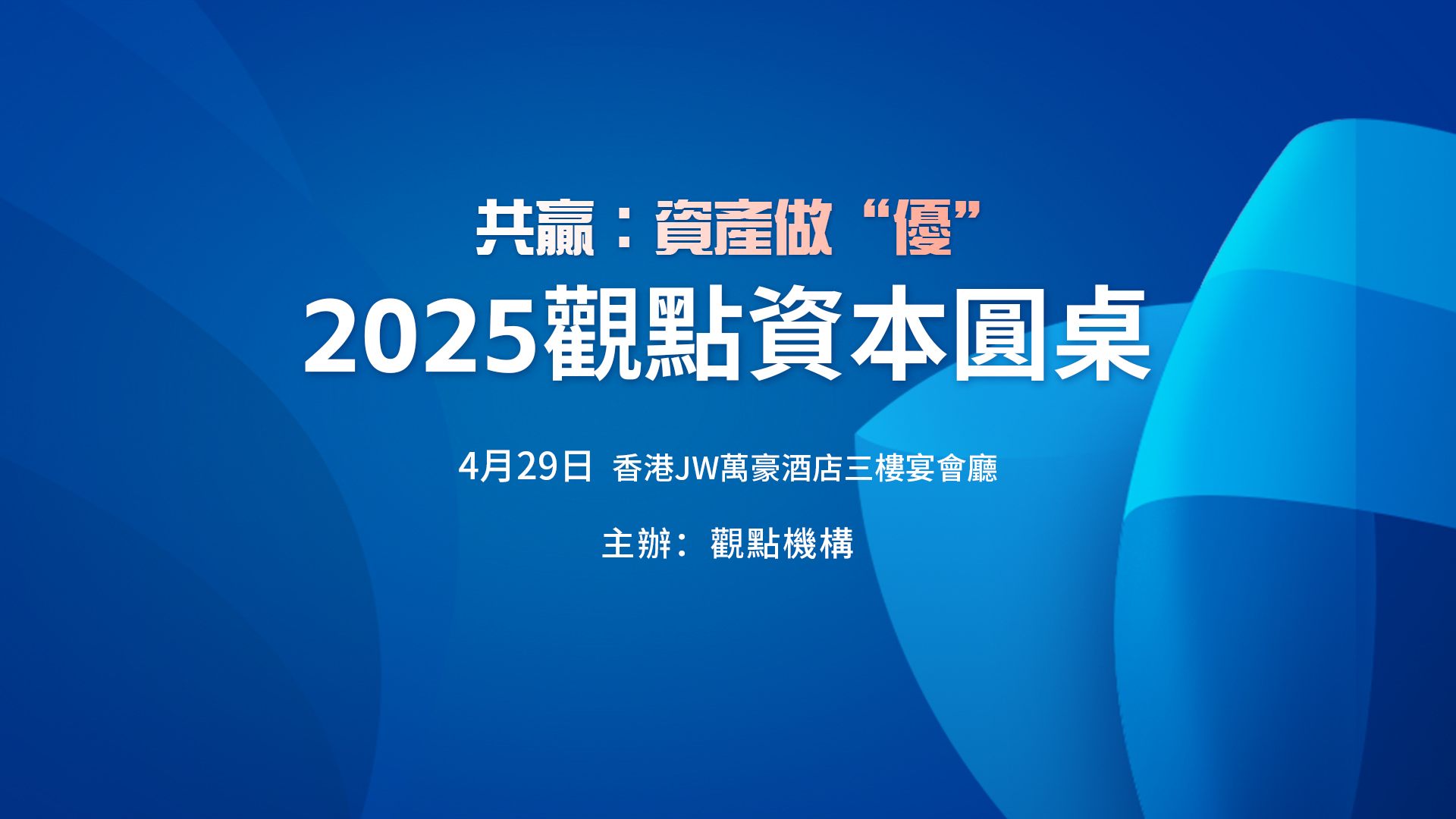 4月29日,以“共贏:資產(chǎn)做‘優(yōu)’”為主題,2025觀點資本圓桌將于香港JW萬豪酒店舉辦,在不確定中錨定確定,重塑屬于下一個時代的資產(chǎn)管理方法論。